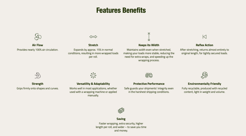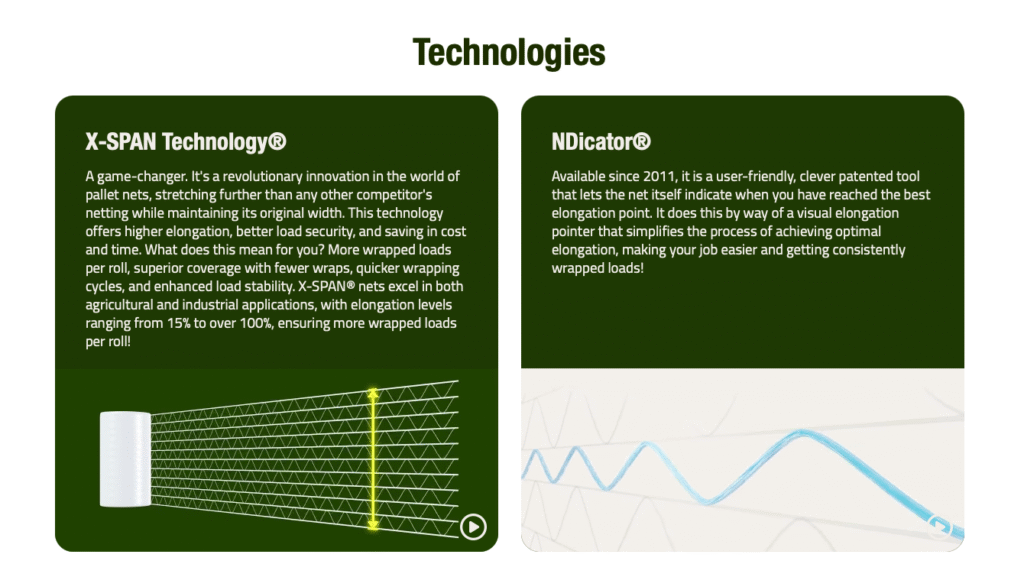 ElastiNet® Pro machine net is the solution for breathable and stable pallet wrapping. With guaranteed 15% elongation, consistent width retention due to unique design, this net delivers more wrapped loads per roll, greater load security, and reduced waste. Designed for sturdy load containment and compatible with most machines, ElastiNet® Pro helps you save time, cut costs, and protect your product in transit.